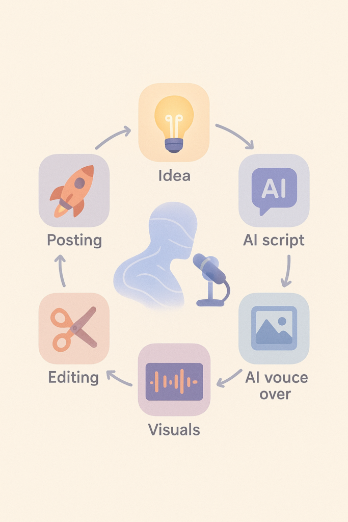 • A simple repeatable AI workflow for scripts, voices, and visuals